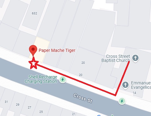 Cross Street Baptist Church (Wednesdays): All three exits onto Cross Street are Fire Exits. Exit the building onto Cross Street, TURN RIGHT and meet outside ‘PAPER MACHE TIGER’ shop.