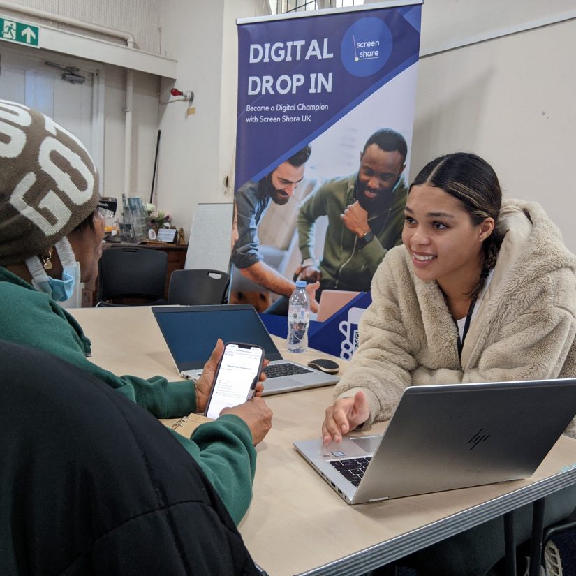 Screen Share UK offers 3 weekly drop-in sessions at our Centre where anyone is welcome to bring questions about using their devices, navigating websites and online portals, and more.