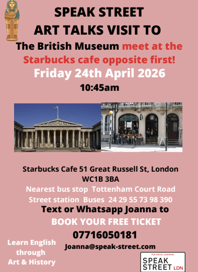 | 10am – 12pm | English with Robina – Outing to Chapel Market – Coffee and Biscuits by Izzie |